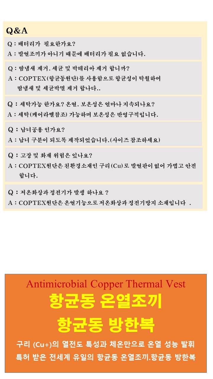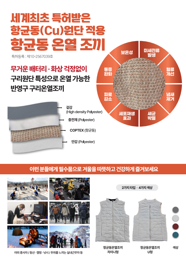 특허받은 전세계 유일의 항균동 온열조끼